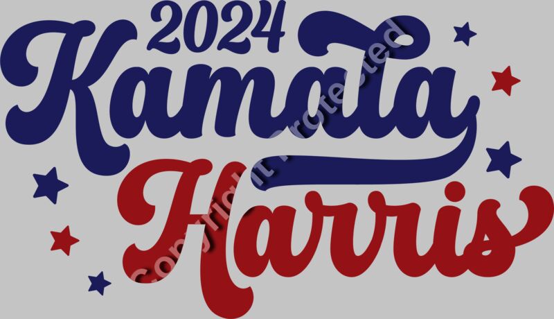 Kamala Harris 2024 campaign typography with bold lettering and star accents in red and blue