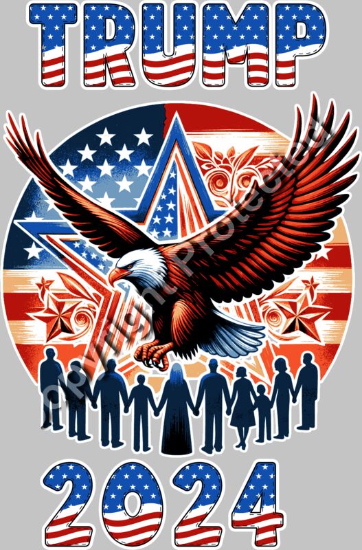 Trump 2024 patriotic eagle design with crowd and stars and stripes theme